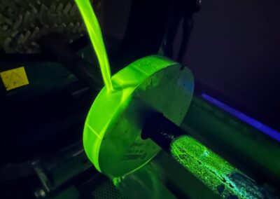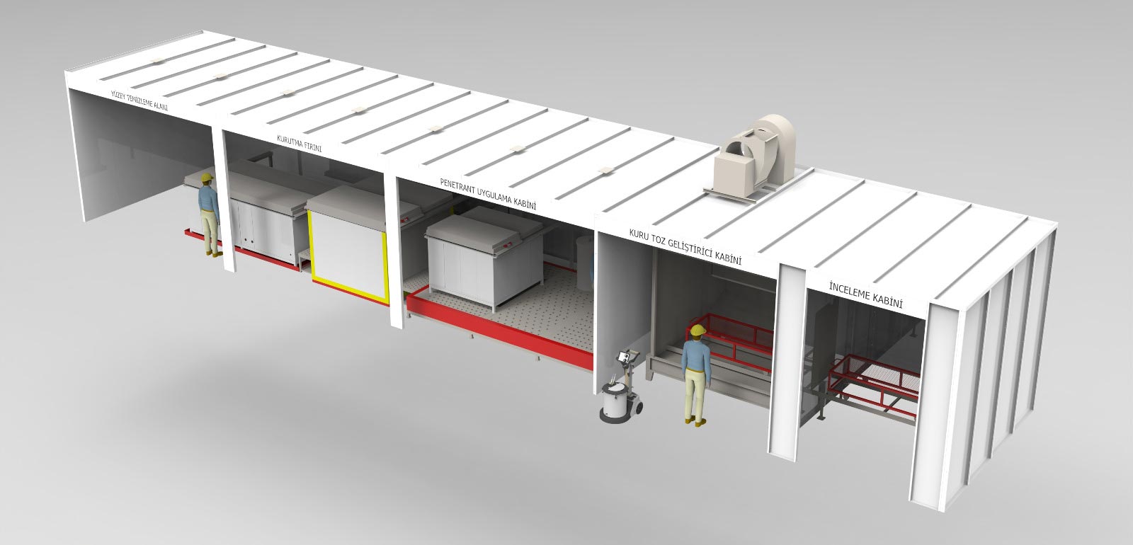 Sıvı Penetrant test hattımız özellikle yüksek adet ve %100 muayene gereksinimi bulunan parçaların hızlı ve güvenilir olarak test edilmesini sağlayacak şekilde tasarlanmıştır. Daldırma ve spreyleme sistemlerine sahip iki farklı opsiyon ile, Seviye 2 ve Seviye 3 hassasiyete sahip florışıl penetrantlar kullanılarak havacılık, savunma ve otomotiv gibi yüksek adetli parçalara sahip sektörlere güvenilir hizmet verilmektedir.